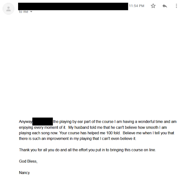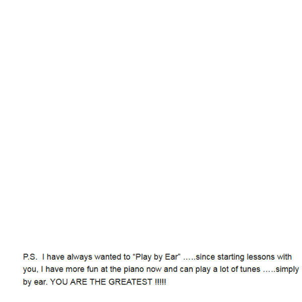 "I have more fun at the piano now and can play a lot of tunes simply by ear. YOU ARE THE GREATEST!"