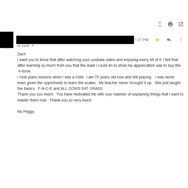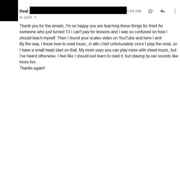 "I found your scales video on YouTube and here I am.. I feel like I should just learn to read it, but playing by ear sounds like more fun"