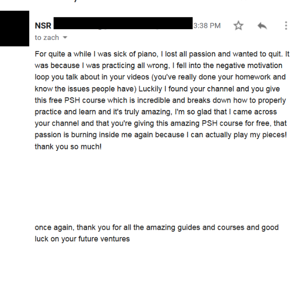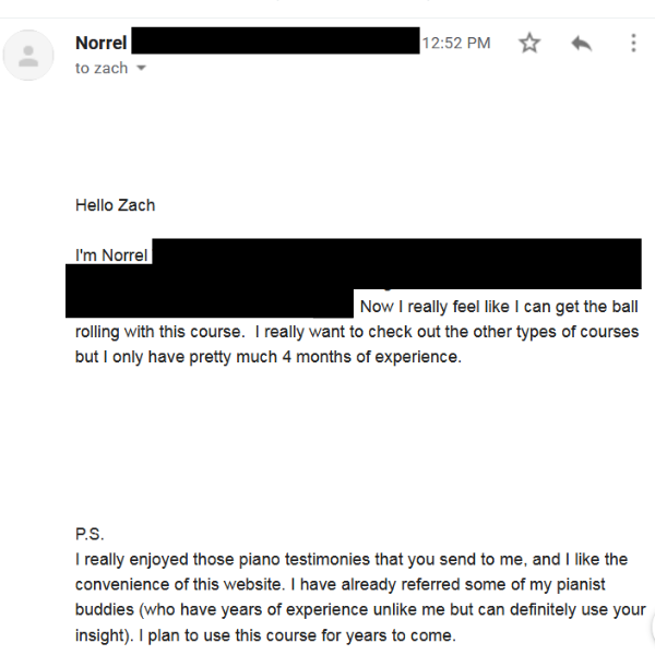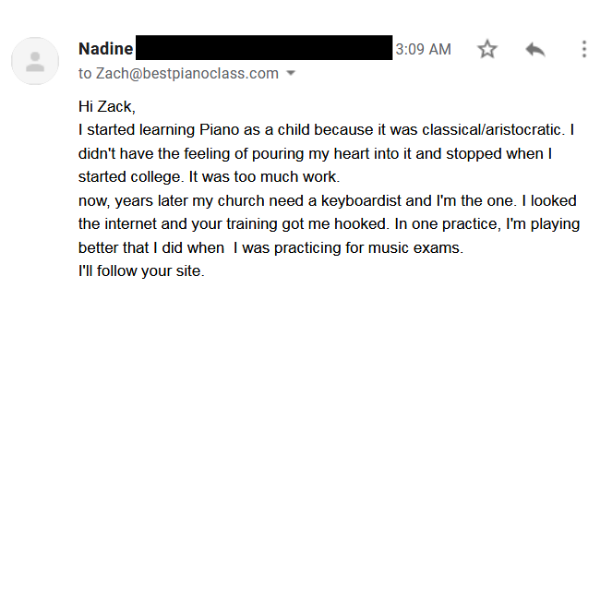 " That passion is burning inside me again because I can actually play my pieces!... Thank you for all the amazing guides and courses"