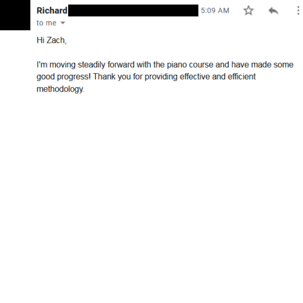 "I'm moving steadily forward with the piano course and have made some good progress! Thank you for providing effective and efficient methodology"