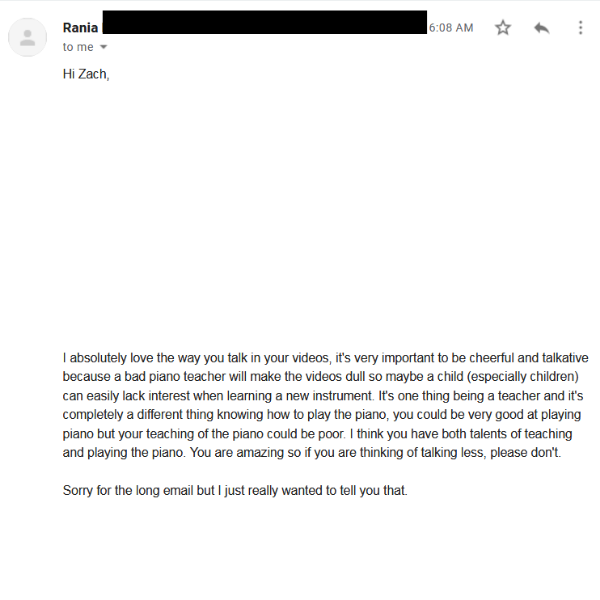 "I absolutely love the way you talk in your videos... I think you have both talents of teaching and playing the piano"