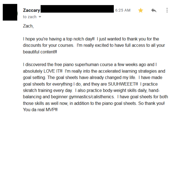 "I'm really into the accelerated learning strategies and goal setting. The goal sheets have already changed my life... So thank you! You're the real MVP!"