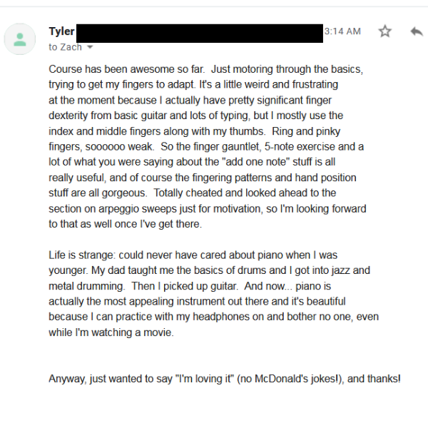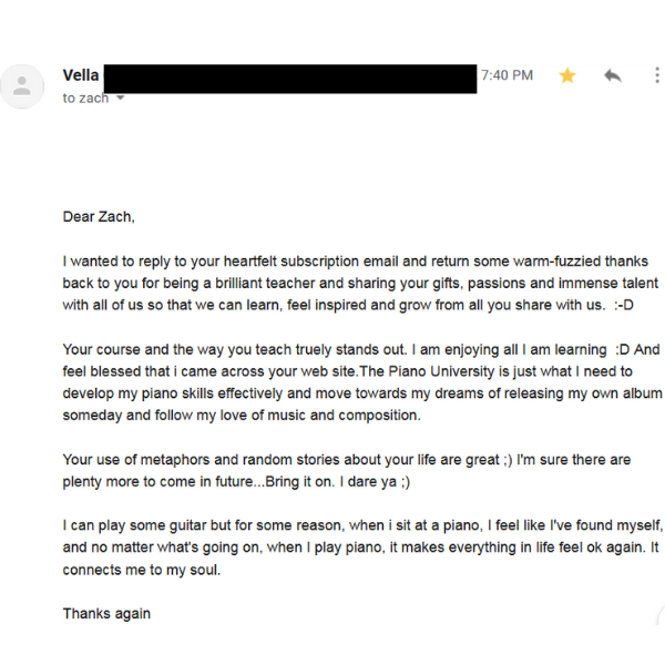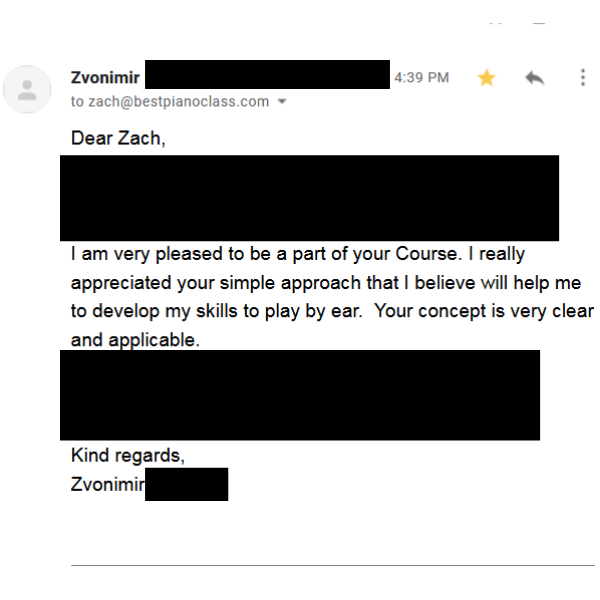 "I am very pleased to be a part of your course. I really appreciated your simple approach that I believe will help me to develop my skills to play by ear"