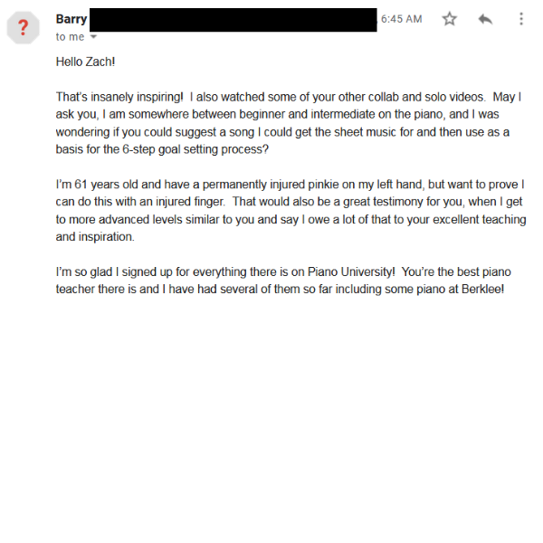 "I owe you a lot... Excellent teaching and inspiration. I'm so glad I signed up for everything there is on Piano University! You're the best piano teacher"