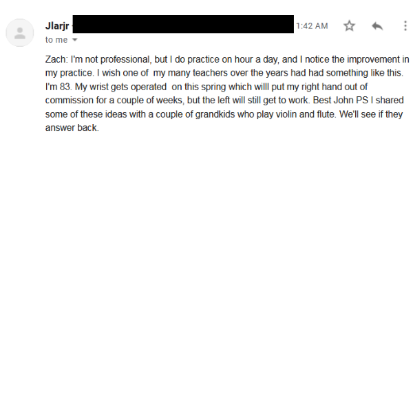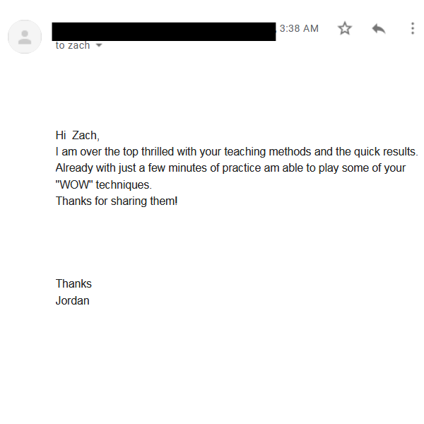 "Now I'm practicing around 2 to 3 hours a day... And people like you are helping me thanks Zach"