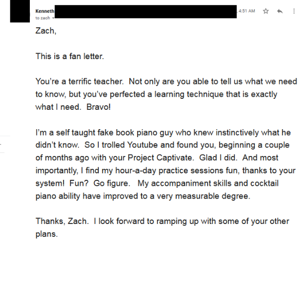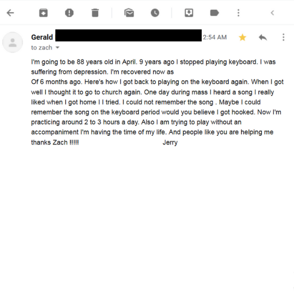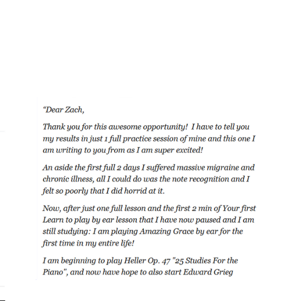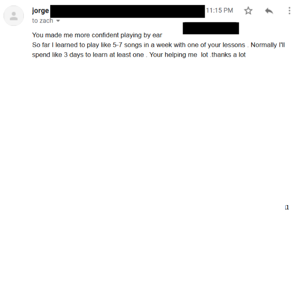 "You made me more confident playing by ear. So fat I learned to play like 5-7 songs in a week with one of your lessons... You're helping me a lot"
