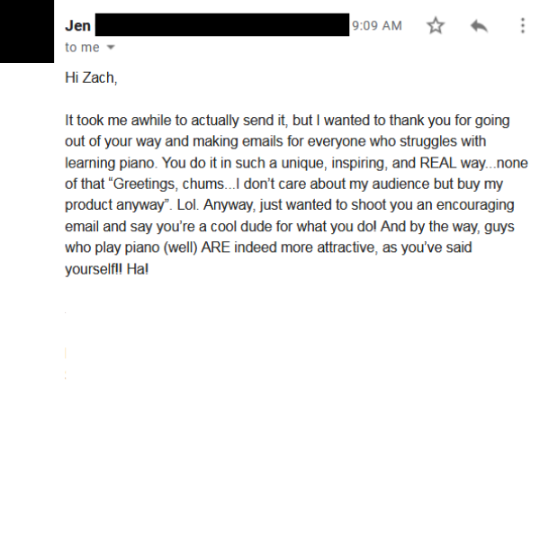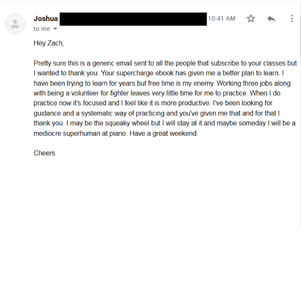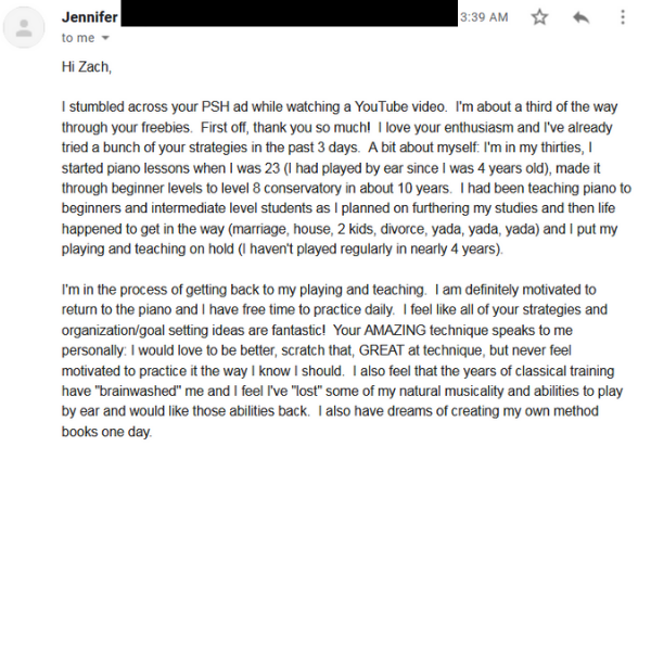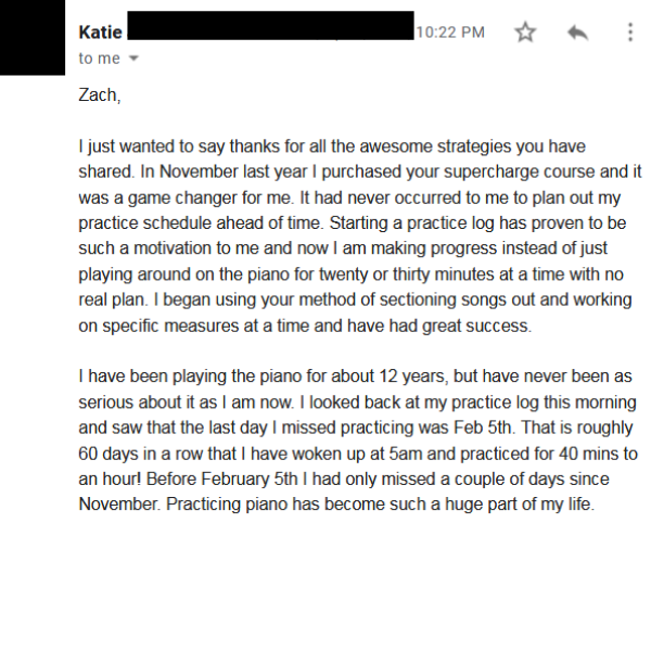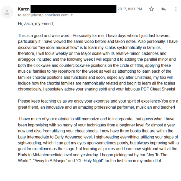 "Thanks for all the awesome strategies you have shared...Practicing piano has become such a huge part of my life"