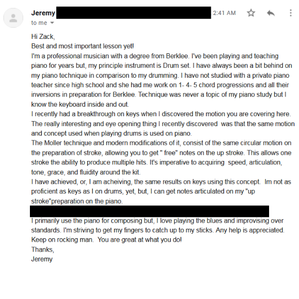 "I recently had a breakthrough on keys when I discovered the motion you are covering here... You are great at what you do"
